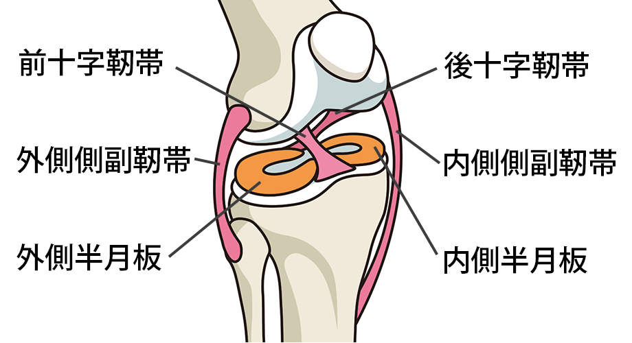 膝関節の大腿骨と脛骨の間にある繊維軟骨という軟骨です。内側と外側に存在し膝にかかる負担を分散したり、衝撃を吸収する働きがあります。